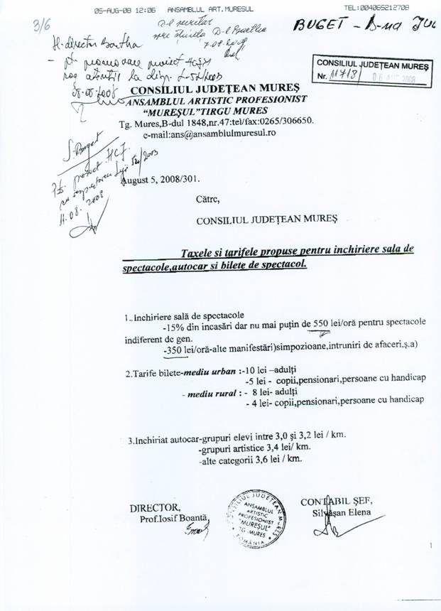 utilizate de către Ansamblul Artistic Mureșul,Școala Populară de Arte și